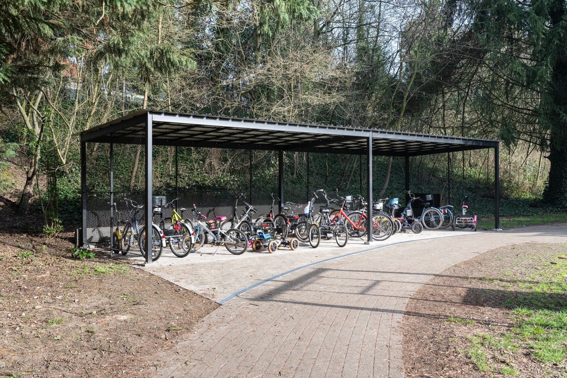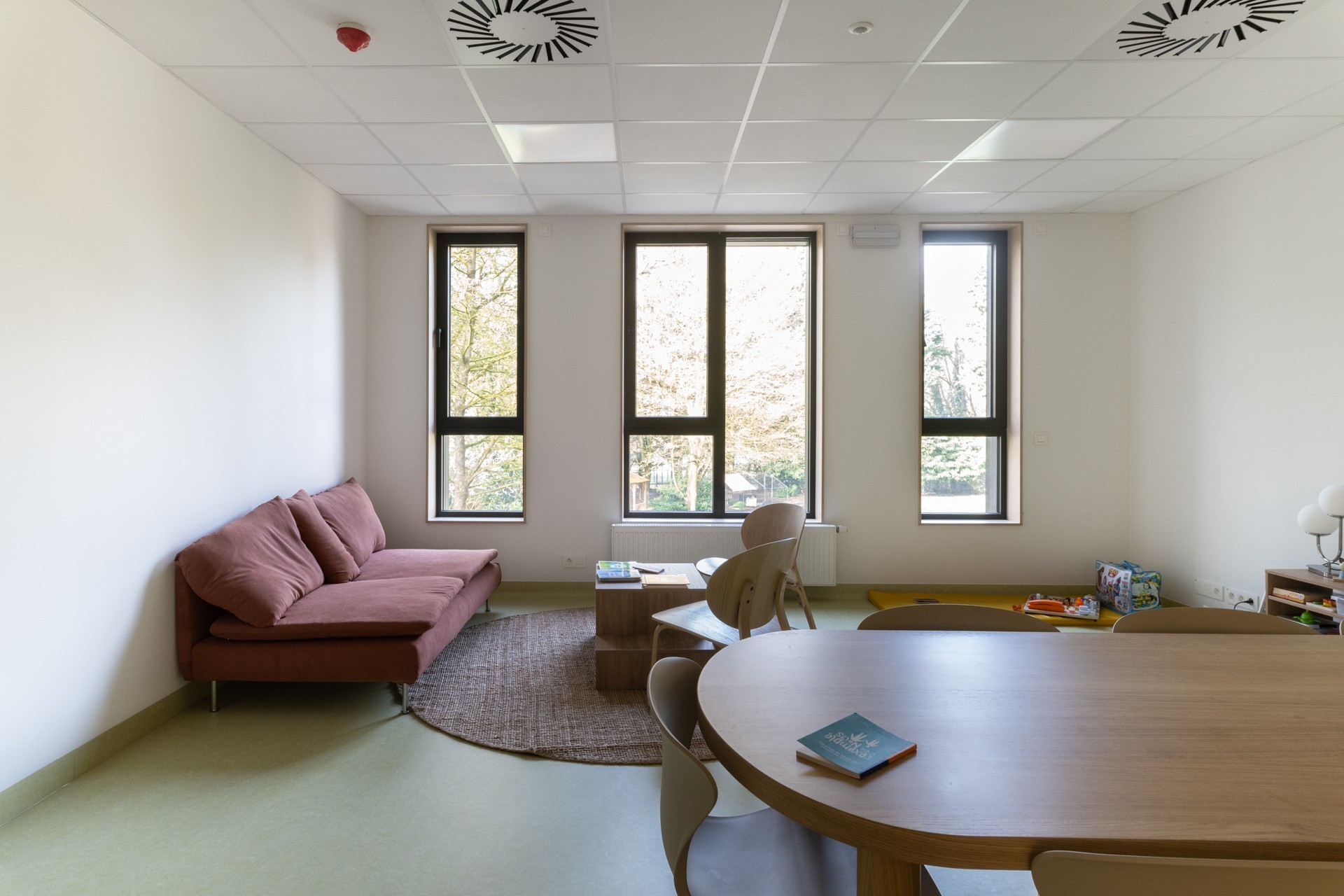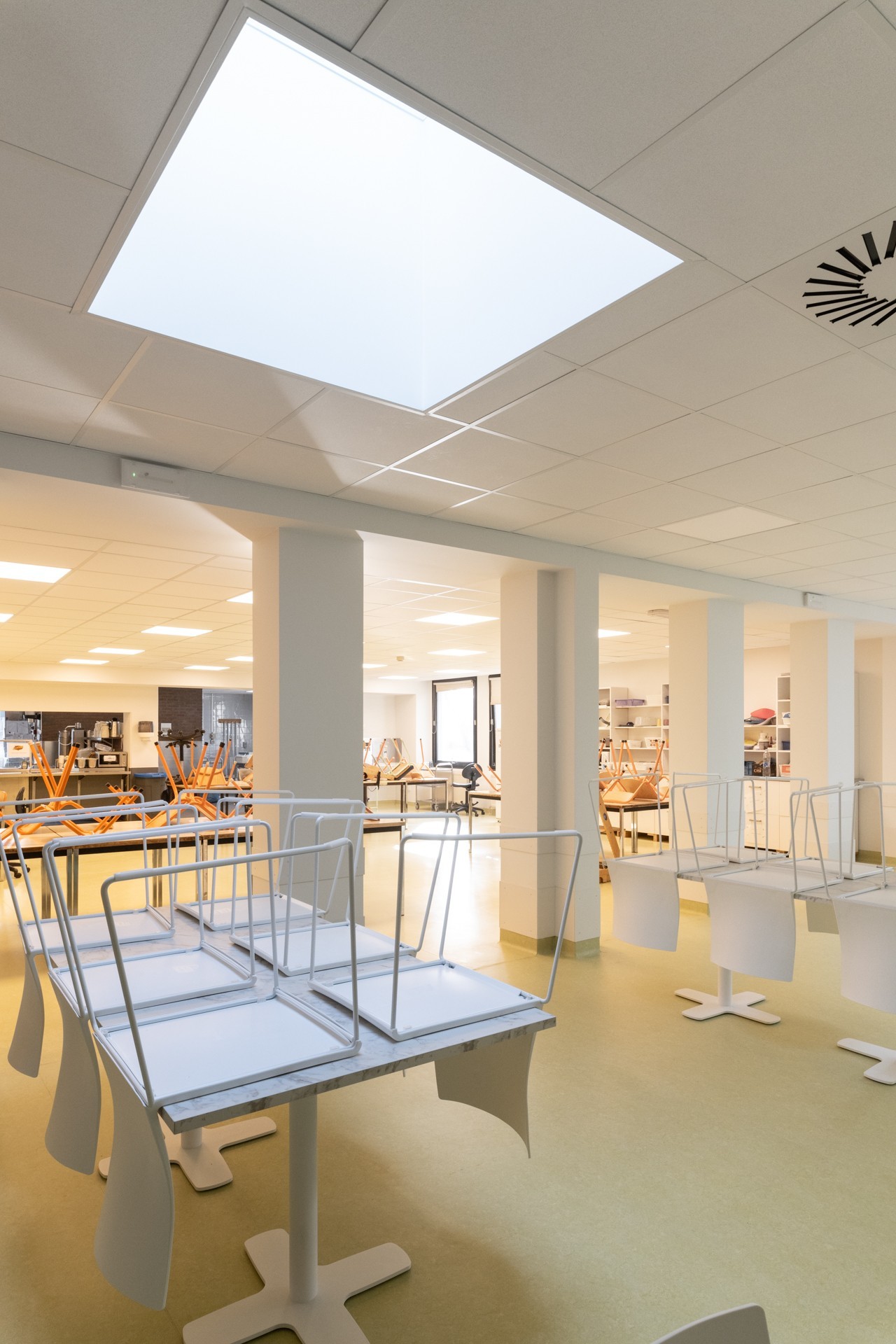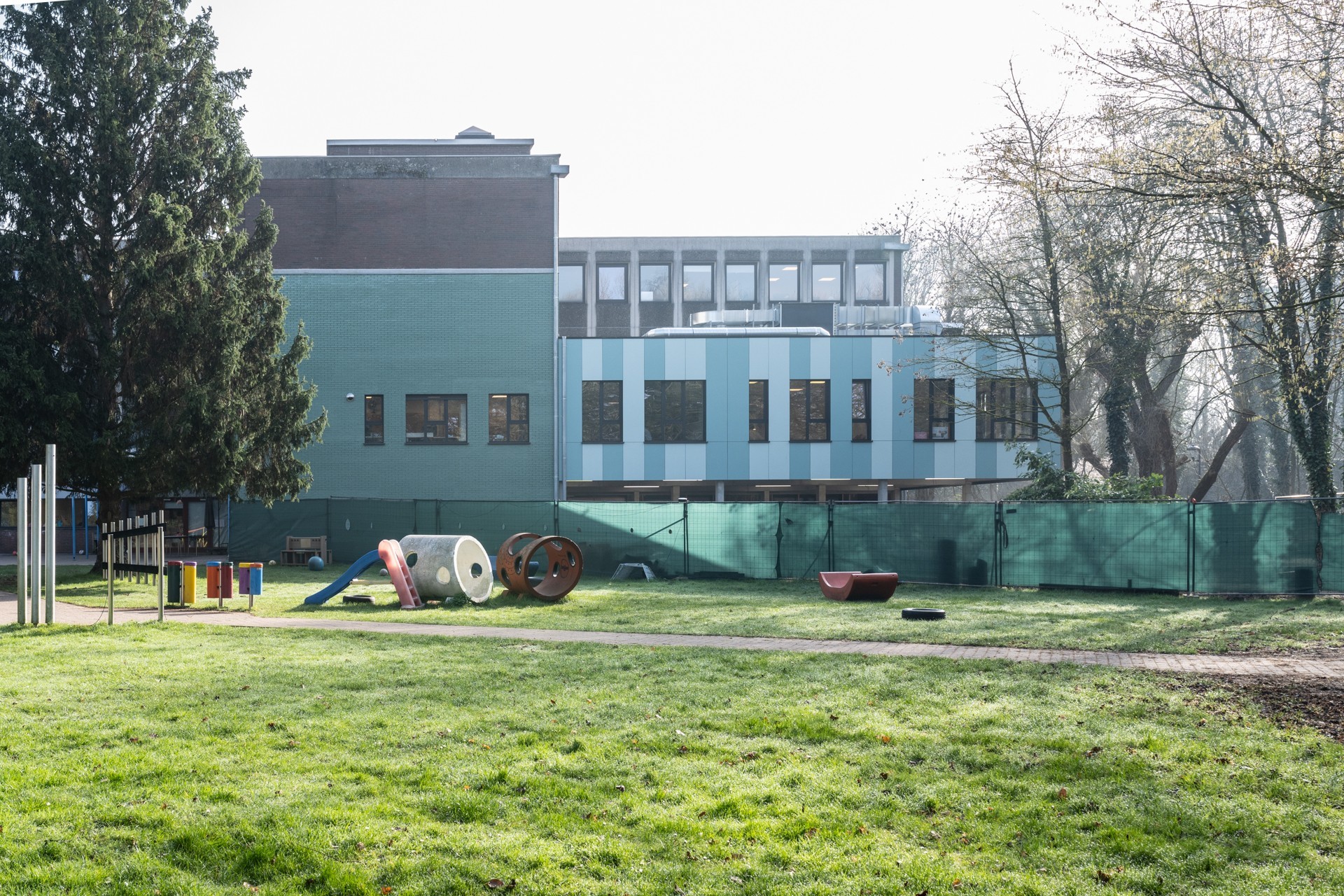En collaboration avec adn Architectures, nous avons réalisé la rénovation et l’extension des locaux de l’école IRAHM à Bruxelles. Le projet comprend la construction d’une extension à hauteur du réfectoire au premier étage avec agrandissement du réfectoire existant, l’aménagement d’une cuisine ergonomique, la création d’ateliers didactiques et pédagogiques pour les jeunes de l’institut, deux locaux polyvalents, ainsi que l’aménagement d’un préau flexible servant de parking sécurisé et d’espace extérieur couvert.