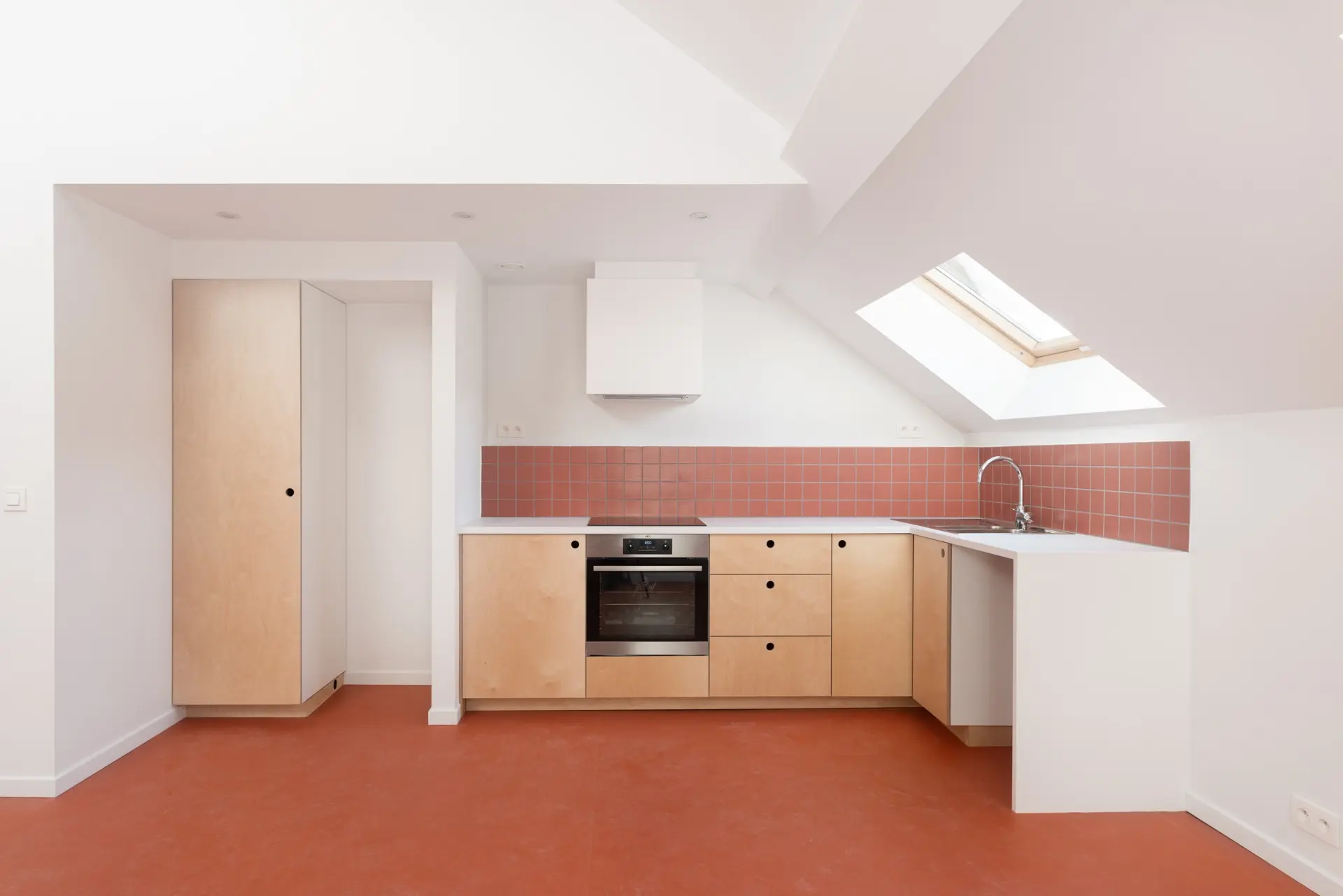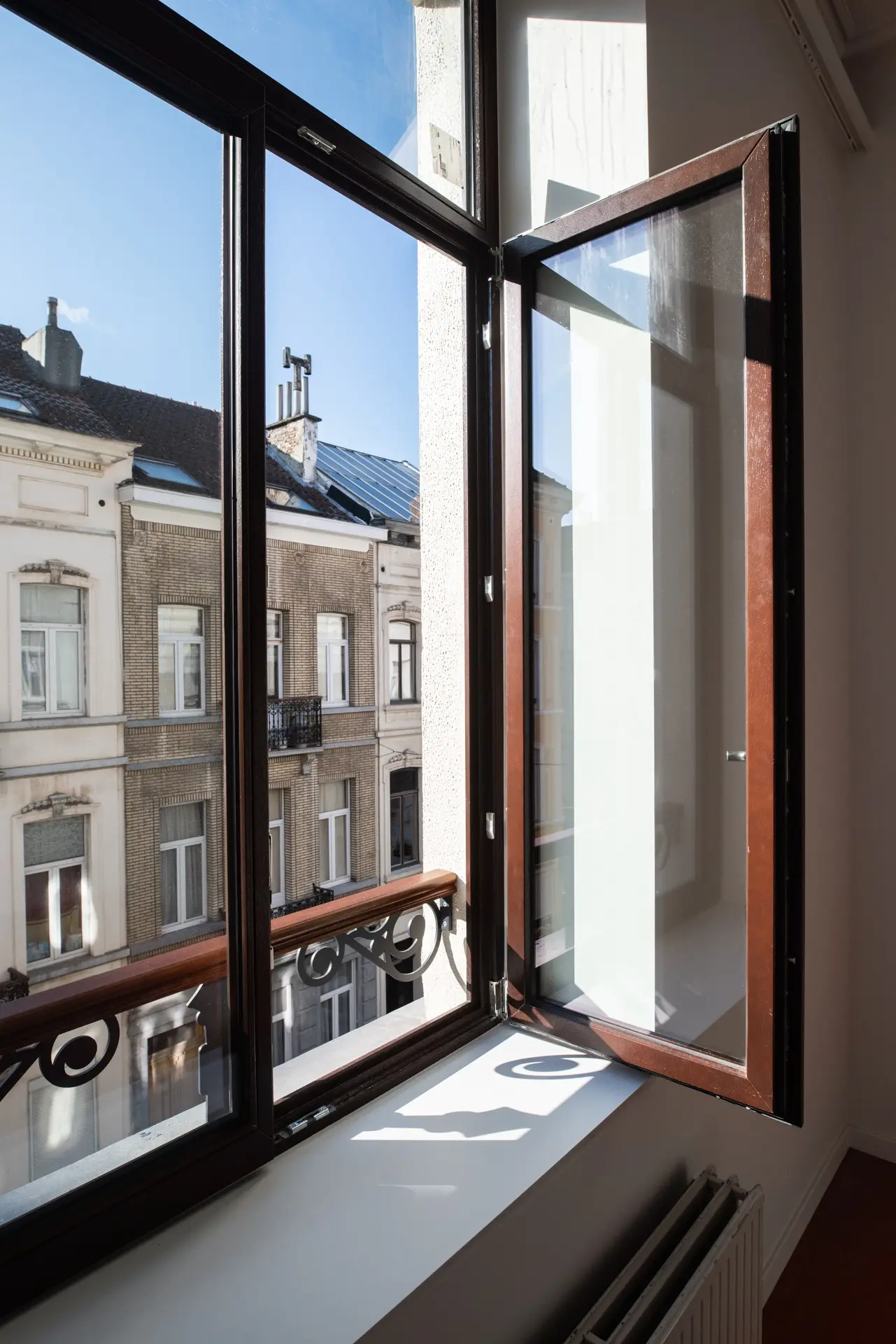 Nous avons réalisé la rénovation et transformation d’un immeuble résidentiel à Schaerbeek, en collaboration avec Fabrique d’espaces. Le projet comprend la rénovation de la façade avant et l’isolation par l’extérieur de la façade arrière, le remplacement ou la rénovation de certains châssis, la mise en conformité incendie de la cage d’escalier principale, le rafraîchissement des parties communes, la création d’une nouvelle trémie technique avec remplacement complet des techniques aux étages +2 et +3, ainsi que la rénovation intérieure de ces niveaux pour la création d’un duplex.