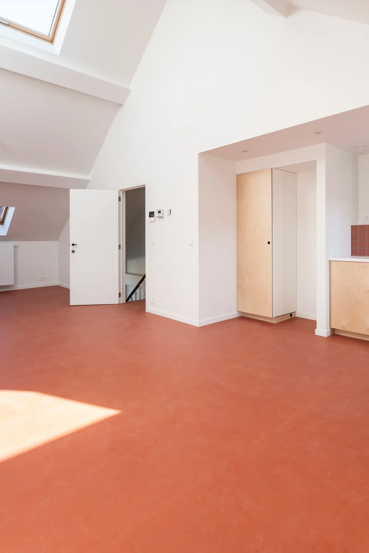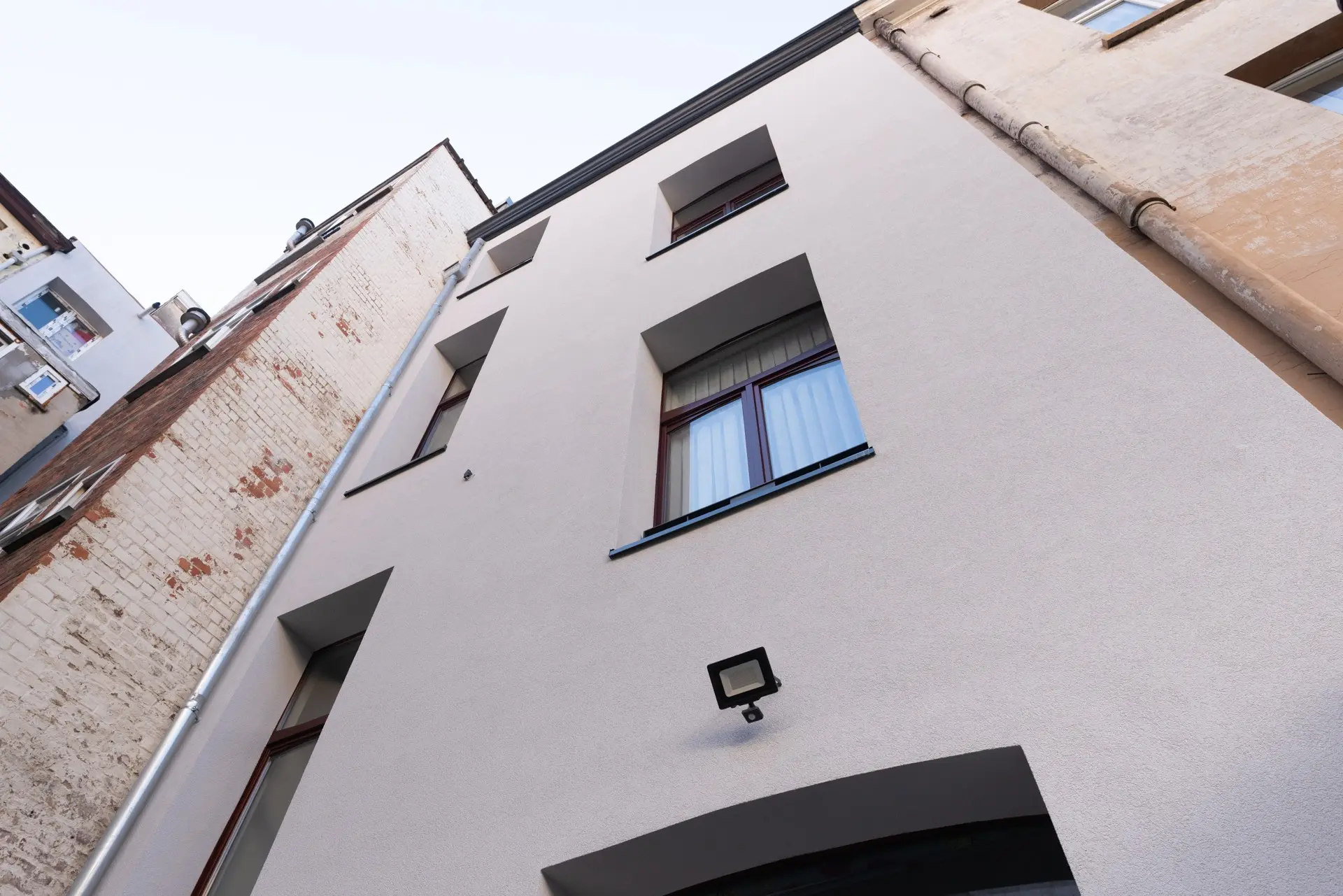 Wij realiseerden de renovatie en transformatie van een woongebouw in Schaarbeek, in samenwerking met Fabrique d’espaces. Het project omvat de renovatie van de voorgevel en de buitenisolatie van de achtergevel, de vervanging of renovatie van bepaalde ramen, de brandtechnische conformering van de hoofdtraphal, het opfrissen van de gemeenschappelijke delen, de creatie van een nieuwe technische schacht met volledige vervanging van de technieken op de verdiepingen +2 en +3, en de binnenrenovatie van deze niveaus voor de inrichting van een duplex.
